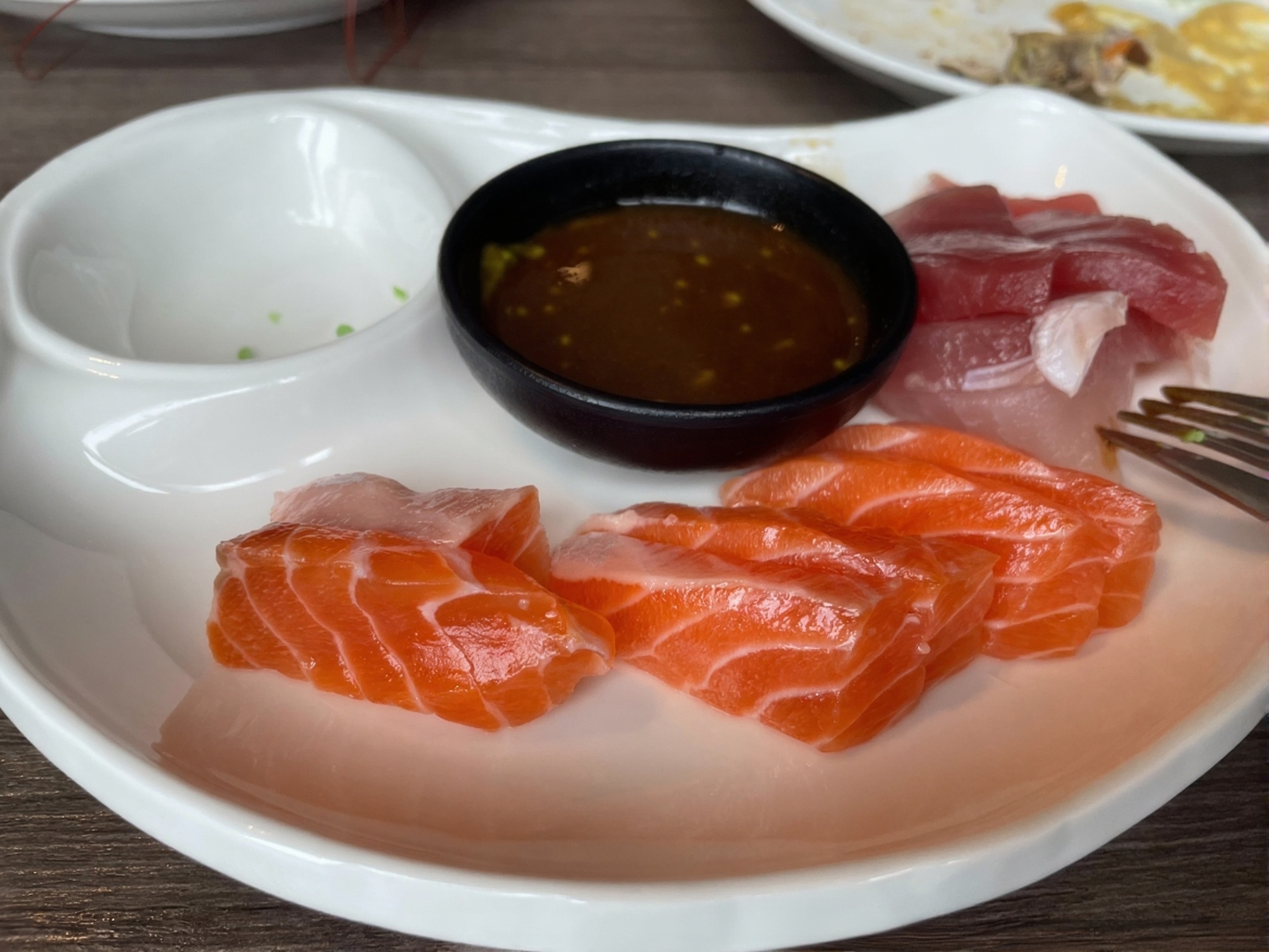 生食區的表現遠超海鮮區的平實,當天嘗了鮭魚、鮪魚,還第一次試了生 toro,豐潤的口感和濃郁的鮮味讓人印象深刻,是整餐中少有的驚喜之處。與生魚片形成對比的是手卷區,三款不同口味的手卷各拿了一盤嘗試,卻成了整餐裡最讓人「空虛寂寞冷」的部分。手卷的料包得很不扎實,吃起來少了層次感,說不上難吃,但毫無記憶點,總覺得少了些手卷該有的飽滿與風味。