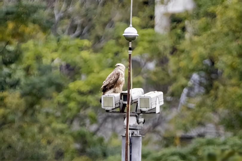 大鵟的棲息習性頗有「距離感」,大部分時間都停駐在遠處的監視器上,對鳥友的拍攝裝備是極大考驗。若是相機鏡頭焦段不夠、畫素不足,即便抵達現場,拍出的畫面也難以達到理想效果。我當天拍攝的照片,也是經過反覆裁切後,才能在電腦上勉強看清細節,可謂一場「相機設備的競賽」。