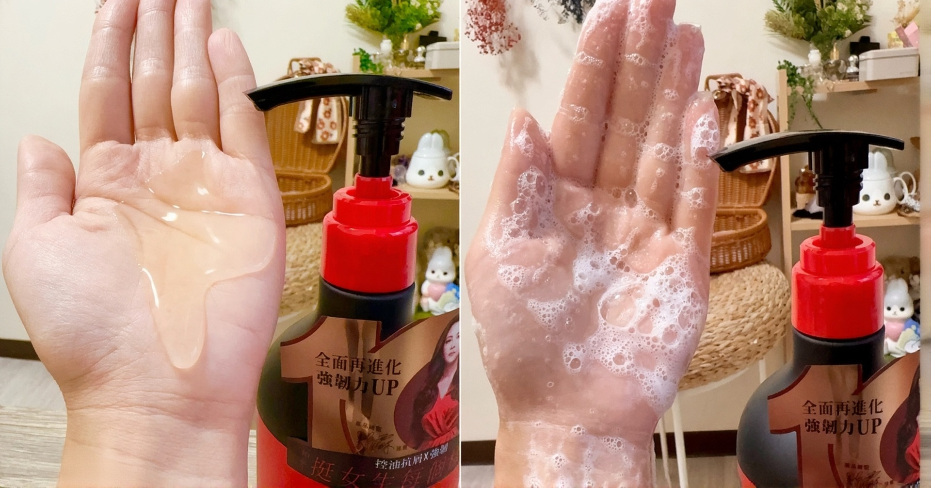 這款洗髮精的質地是水潤的濃稠狀,採用專業豐泡技術,只需擠出少量,加一點水就能搓洗出綿密細緻的泡沫,泡沫能深入頭皮縫隙,帶走油垢、汗漬與髒污,深層清潔的同時,洗感超級舒服。