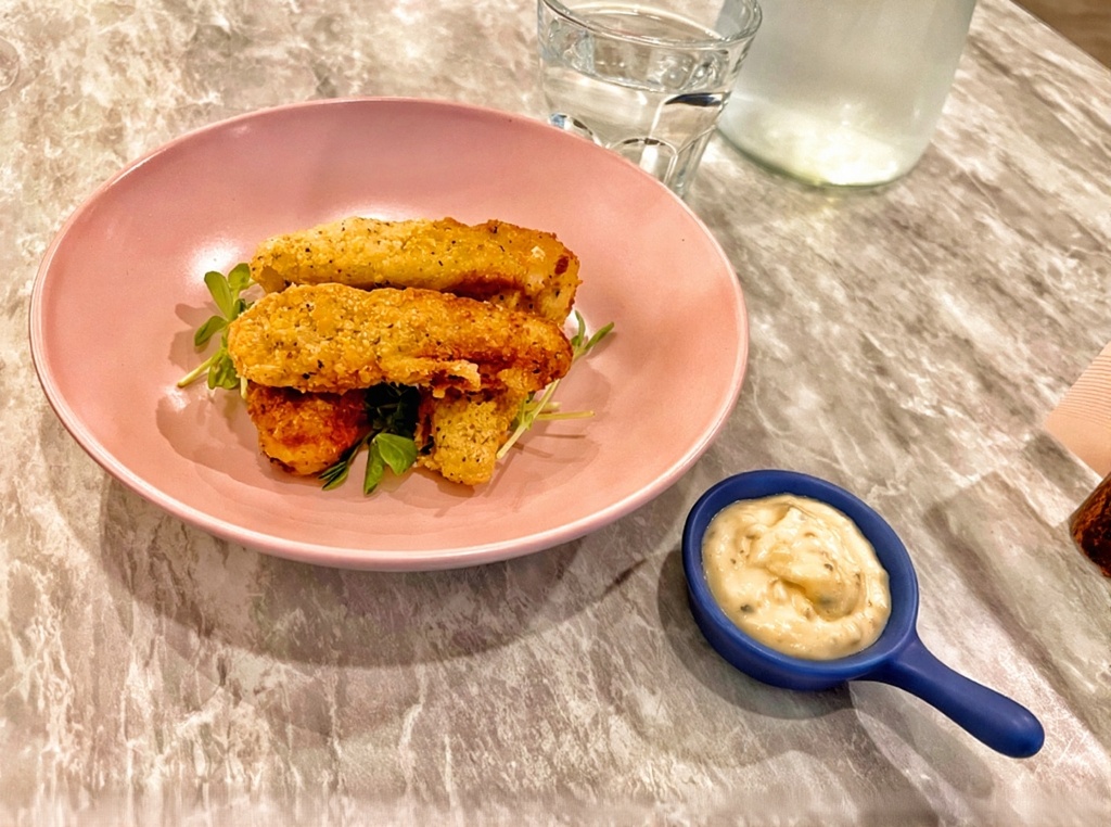 炸鱈魚條外皮酥脆、內裡軟嫩多汁,熱騰騰超療癒,搭配塔塔醬更夠味。