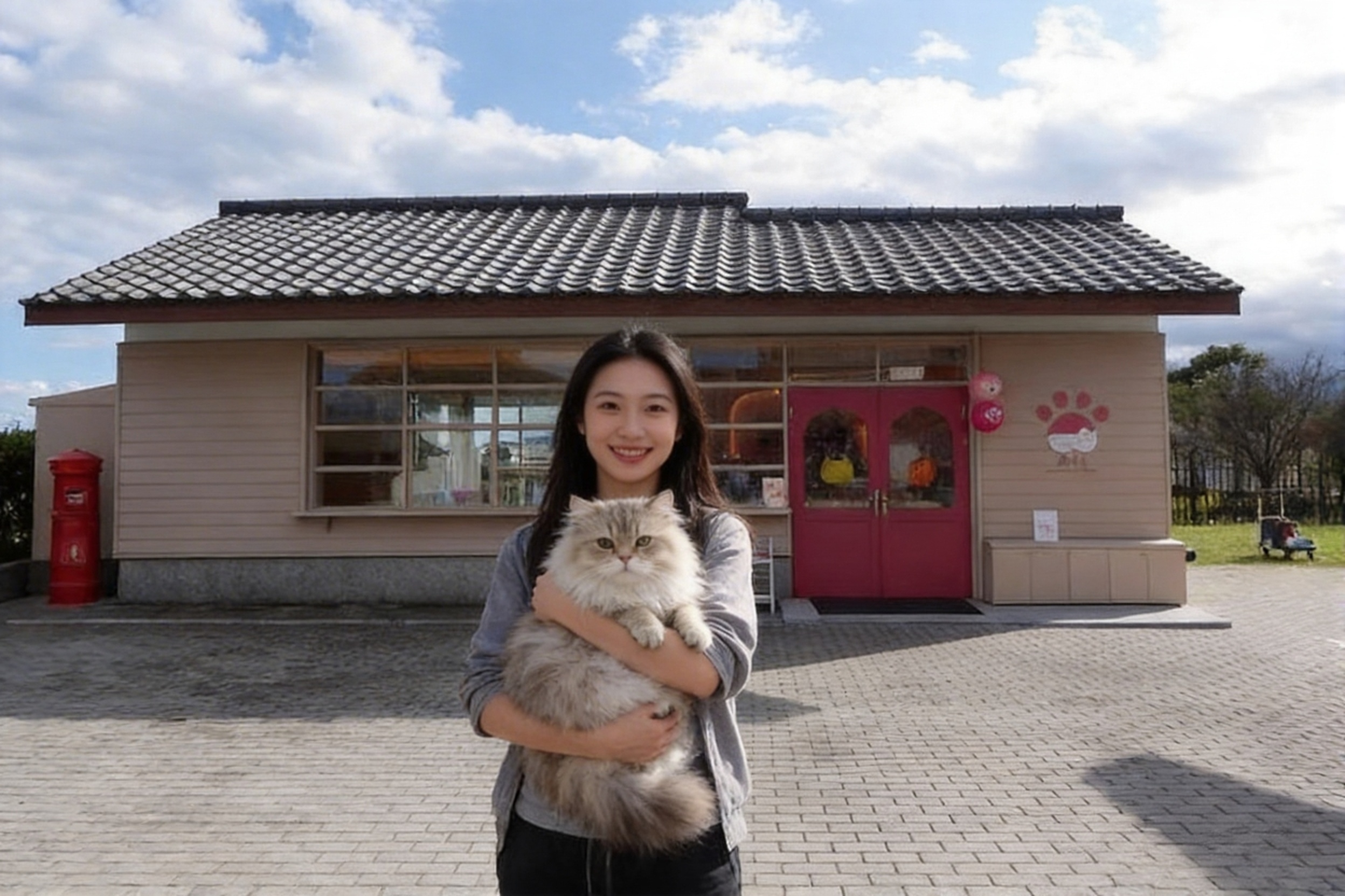 遠遠看有點不起眼,要認明右側的粉色貓掌。粉色的入口處、窗櫺上可愛的貓貼紙,可以清楚看到內部逗貓情況,所以常常有人好奇在外圍觀。