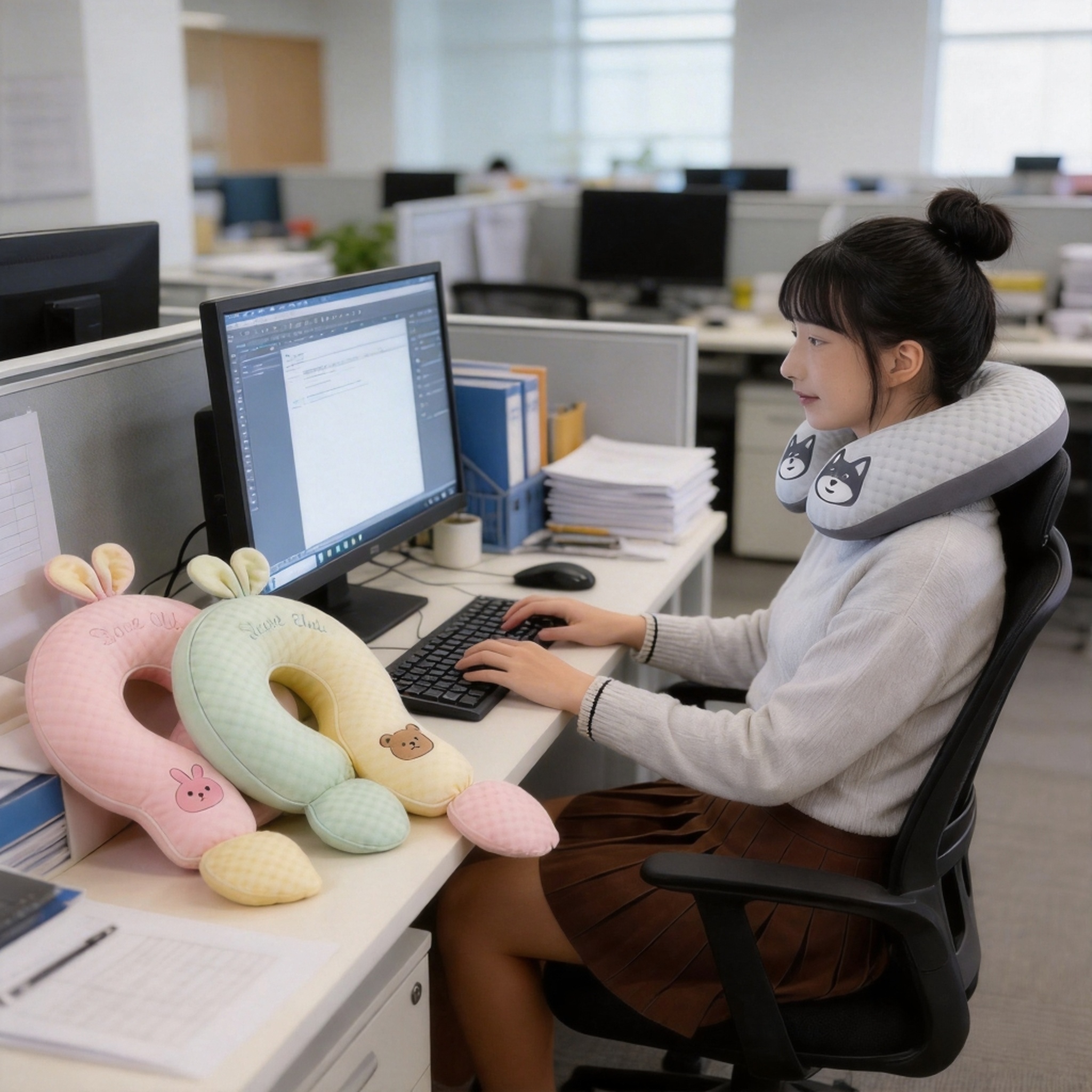 辦公場景:作為久坐打工人,腰頸酸痛真的是常態。我把它放在辦公椅上,墊在腰後,能很好地贴合腰部曲線,支撐力剛好,不會太硬也不會太軟,久坐下來腰也不會那麼酸了。中午午睡的時候,把它當靠枕,搭配冰豆豆面料,清爽不悶,醒來精神滿滿,比趴在桌子上睡舒服太多,同事們都被我種草了。