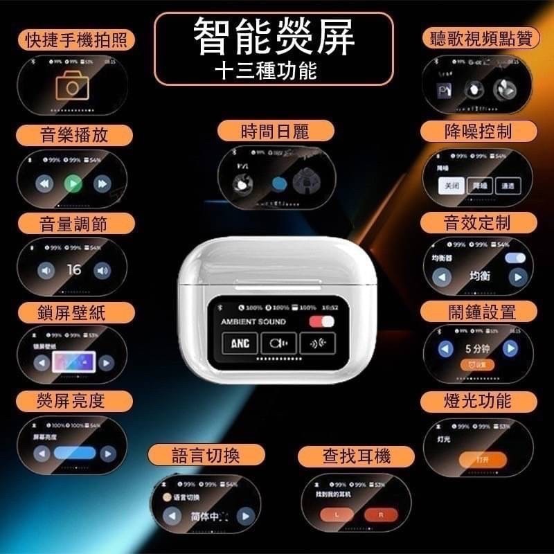 最吸睛的絕對是充電盒上的全彩智能觸控螢幕!不像傳統耳機只有指示燈,這款直接內建小螢幕,滑動就能操作,科技感爆棚~